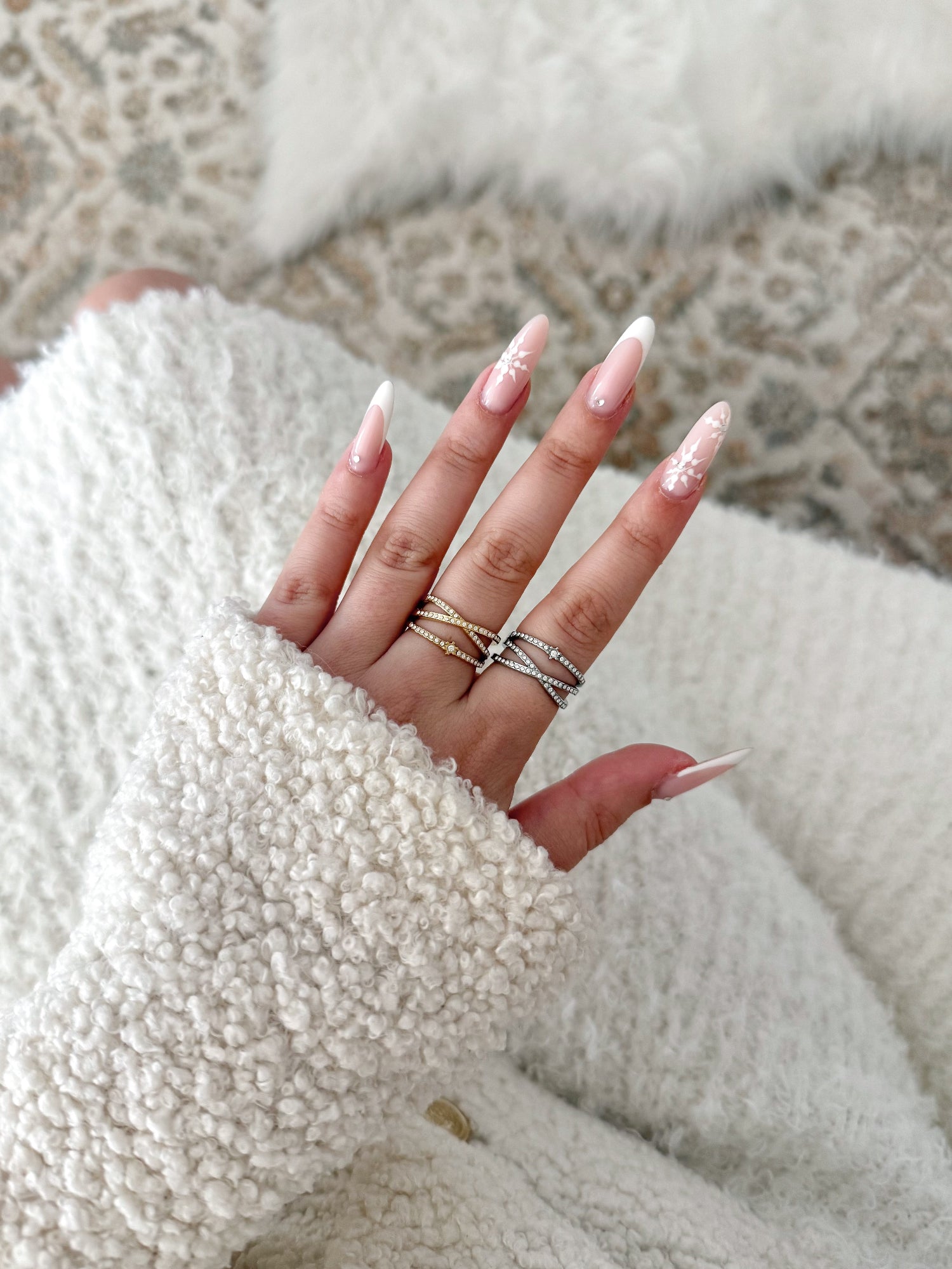 Cette bague incarne la finesse et le raffinement. Ses anneaux se croisent avec harmonie pour créer un design moderne, lumineux et ultra-féminin.