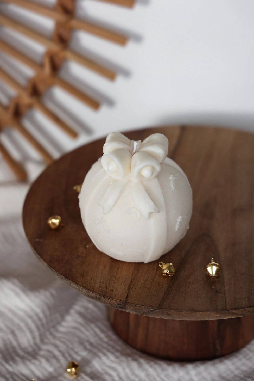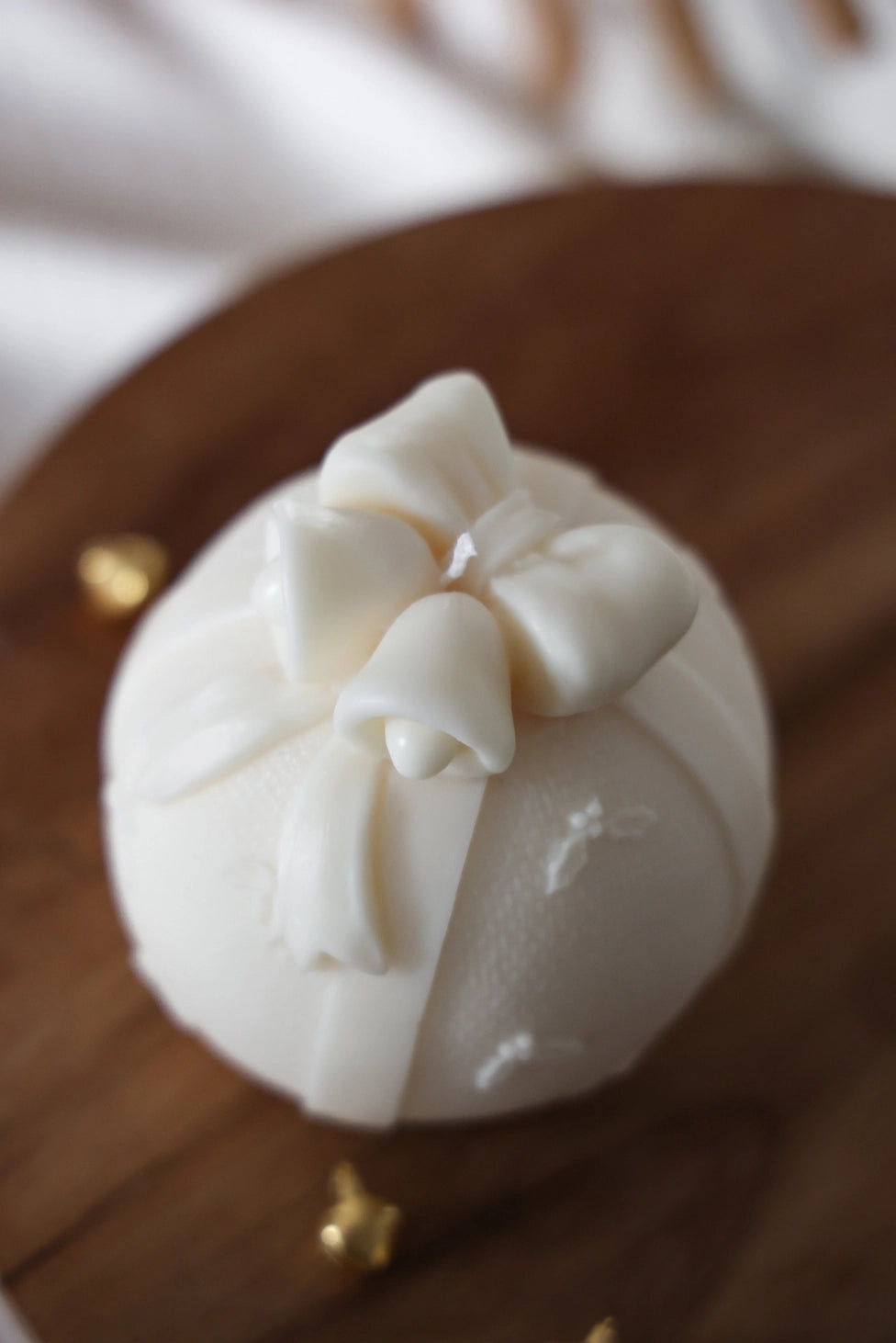Transformez votre décoration de fêtes avec cette magnifique bougie en forme de boule de Noël, délicatement sculptée et sublimée par un nœud élégant. Son design raffiné et sa finition en font une pièce décorative chic, parfaite pour créer une ambiance cosy, festive et harmonieuse.