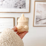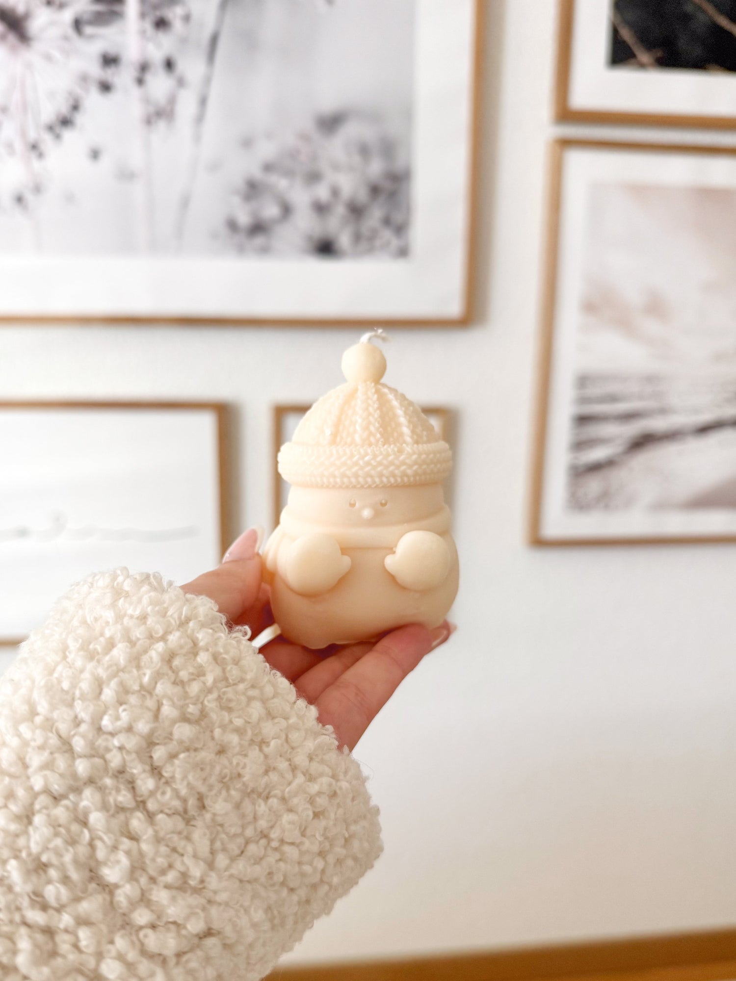 Une adorable bougie sculptée, parfaite pour créer une ambiance chaleureuse et cosy.