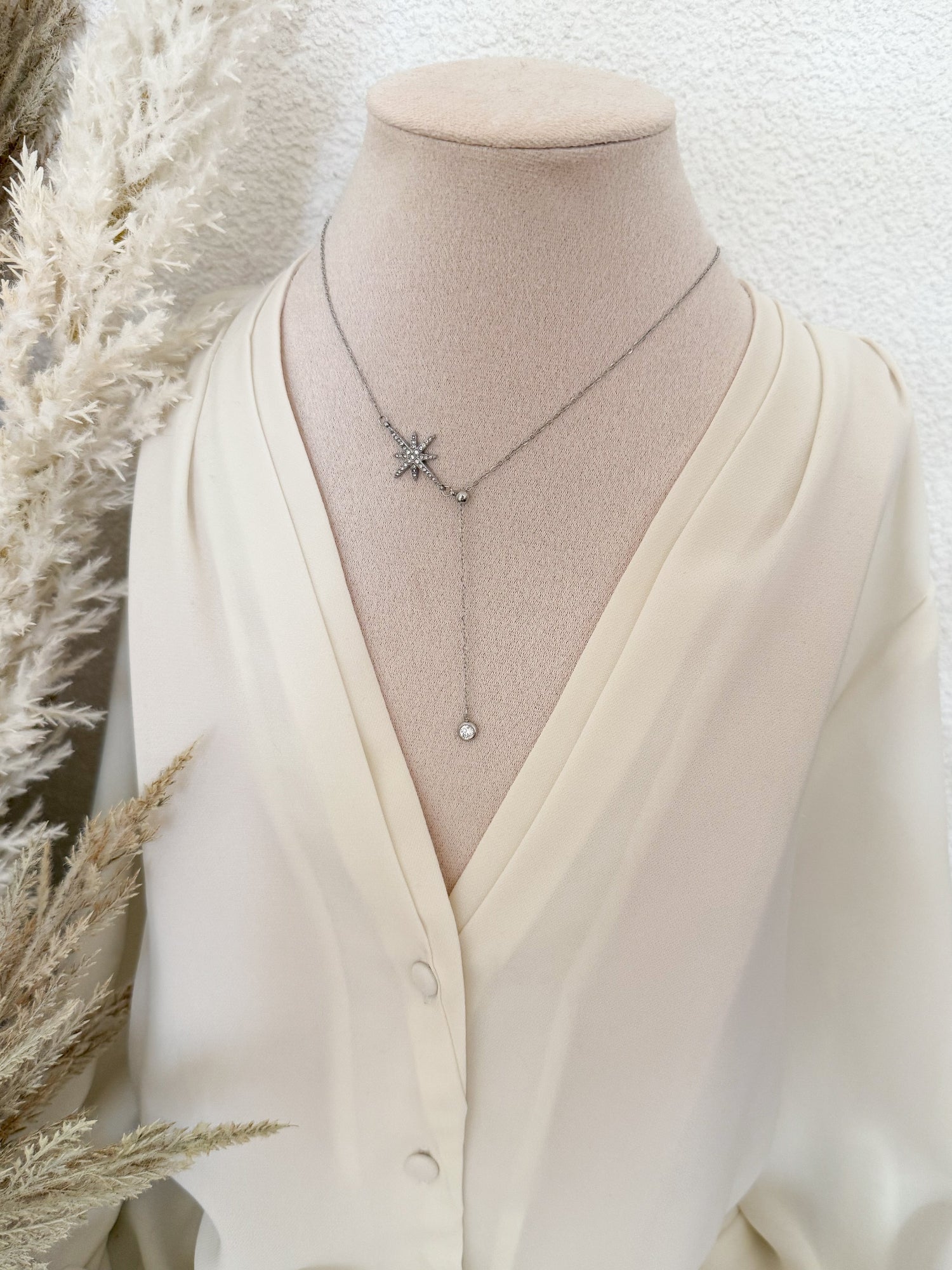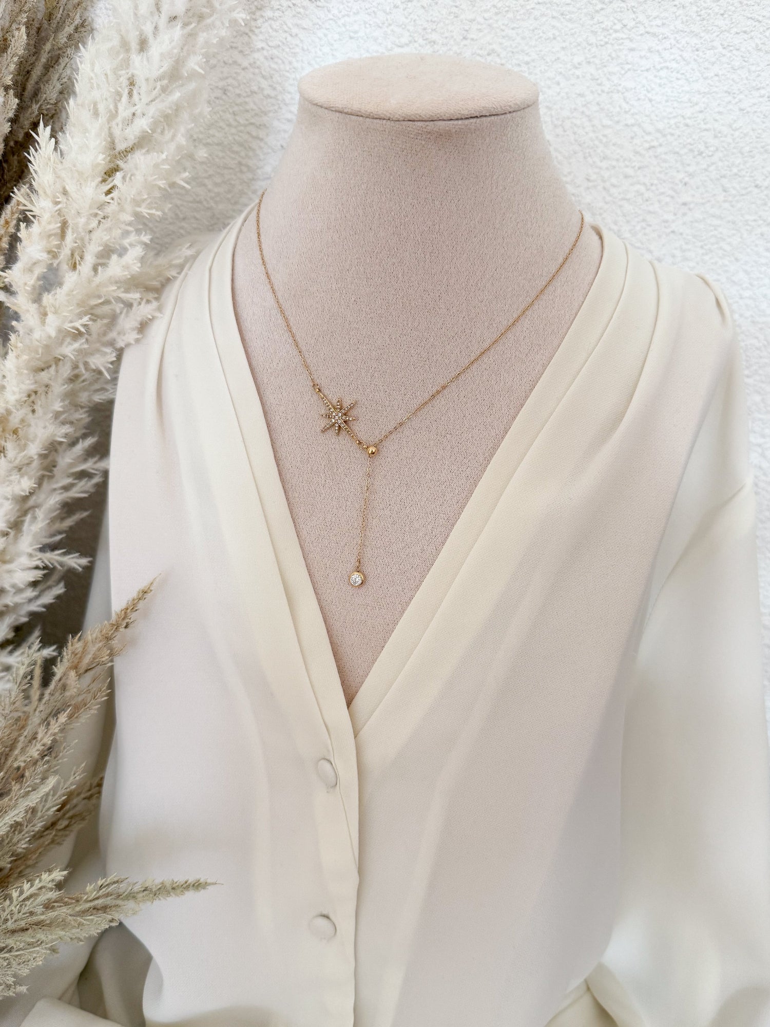 Un collier délicat et lumineux qui capture la magie des nuits étoilées. Parfait pour sublimer un décolleté, accompagner une robe bohème ou illuminer une tenue du quotidien.