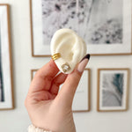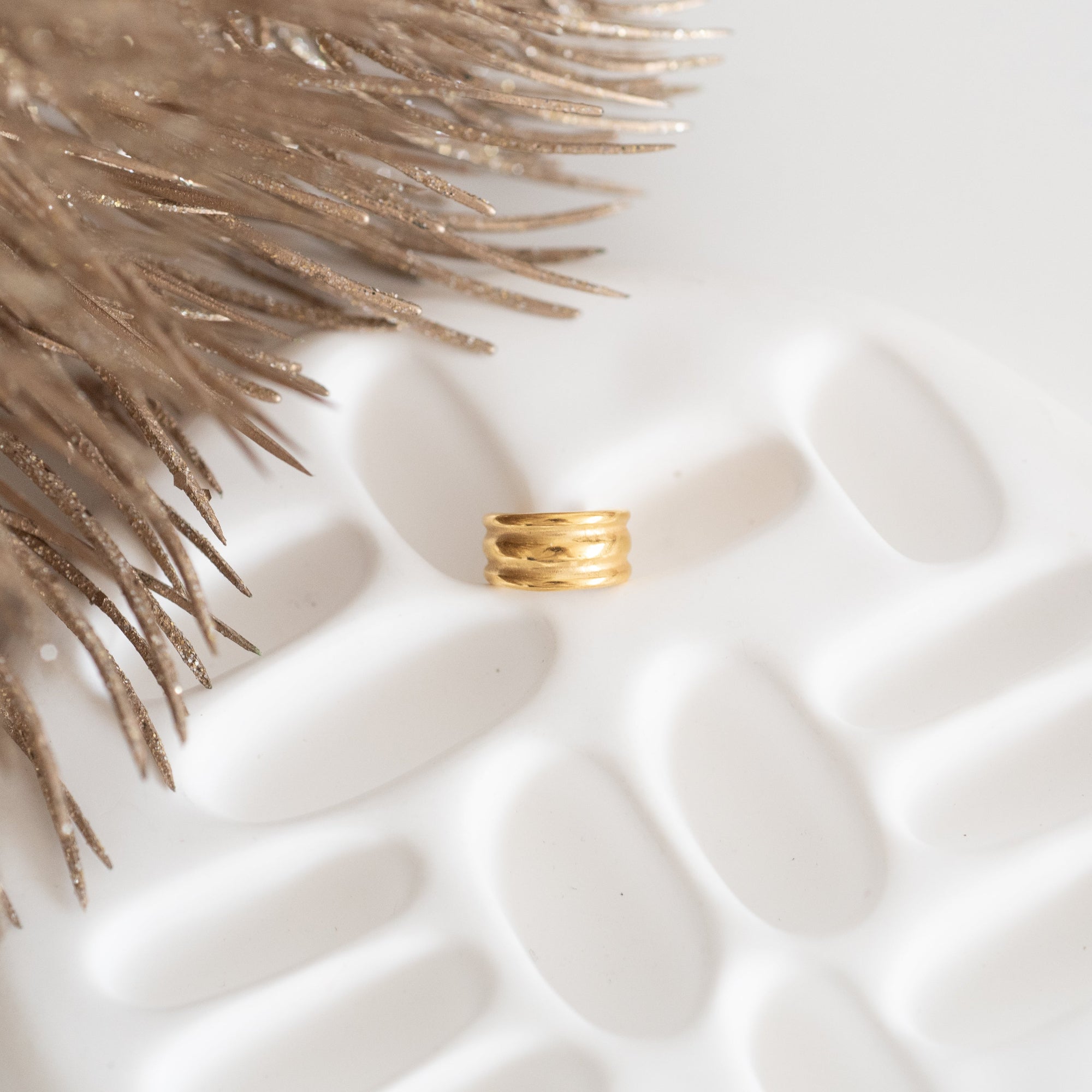 Un bijou discret mais affirmé. Ce earcuff se glisse simplement sur le cartilage pour apporter une touche sophistiquée, sans avoir besoin de perçage. Son design ondulé et martelé capte subtilement la lumière.