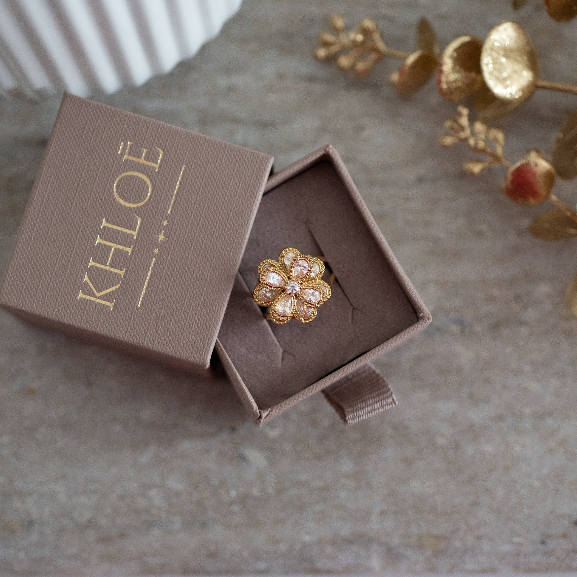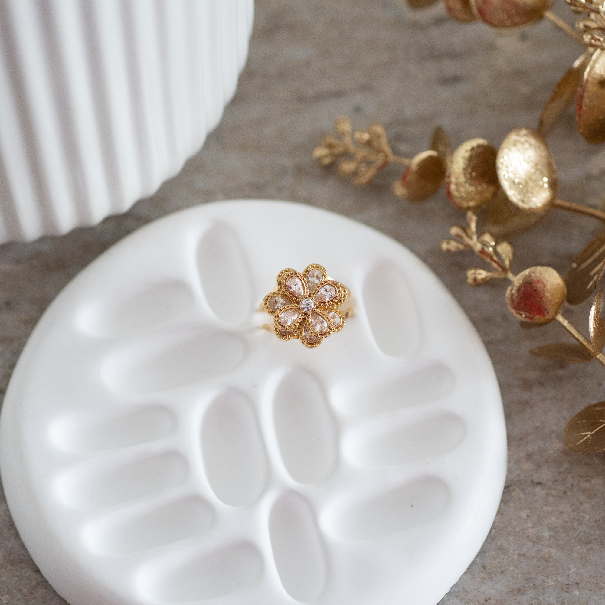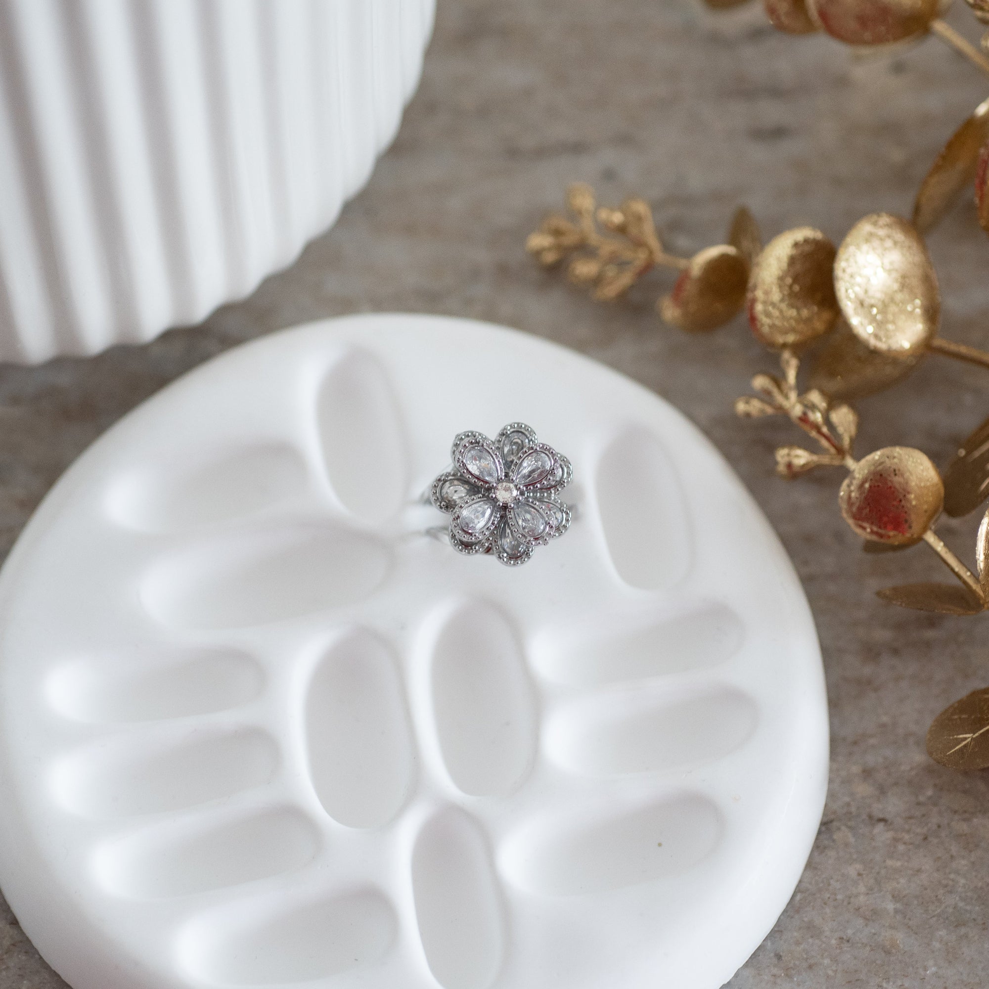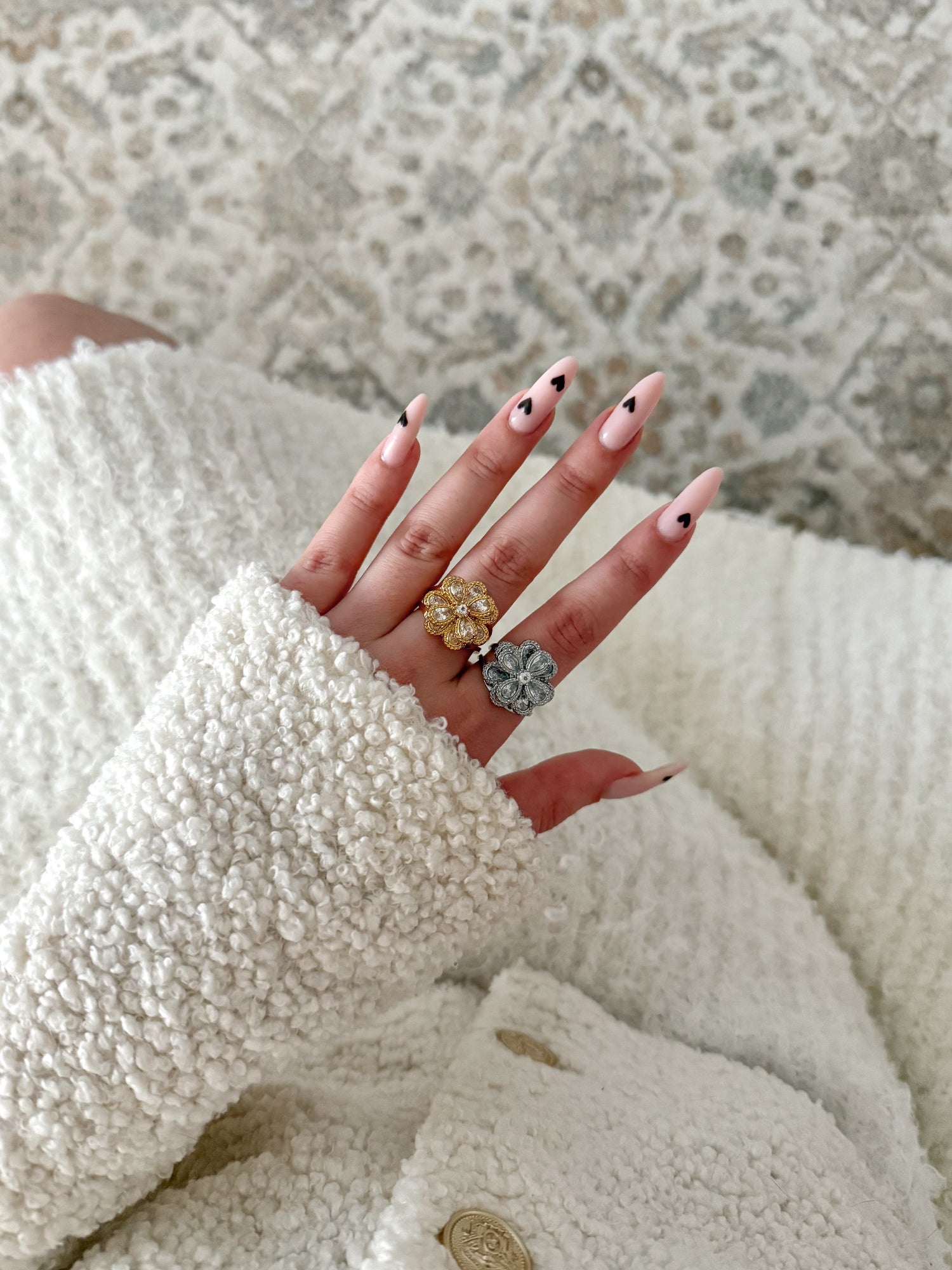 À la fois belle et apaisante, cette bague anti-stress se distingue par son motif fleur délicatement serti de pierres scintillantes. Conçue pour être manipulée discrètement, elle aide à réduire le stress et l’anxiété tout en restant un véritable bijou raffiné.