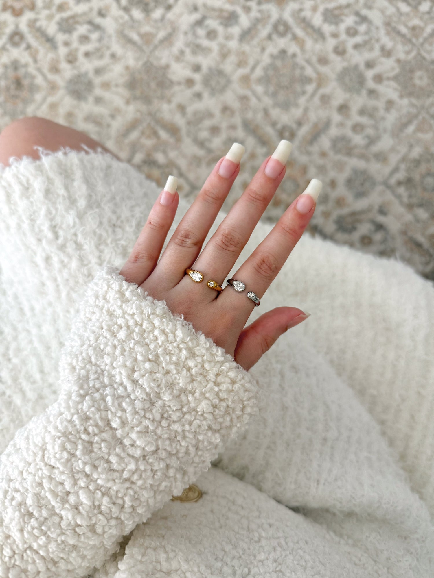 Cette bague séduit par son design épuré et contemporain. Sa forme ouverte, en fait un bijou unique qui capte la lumière à chaque mouvement.