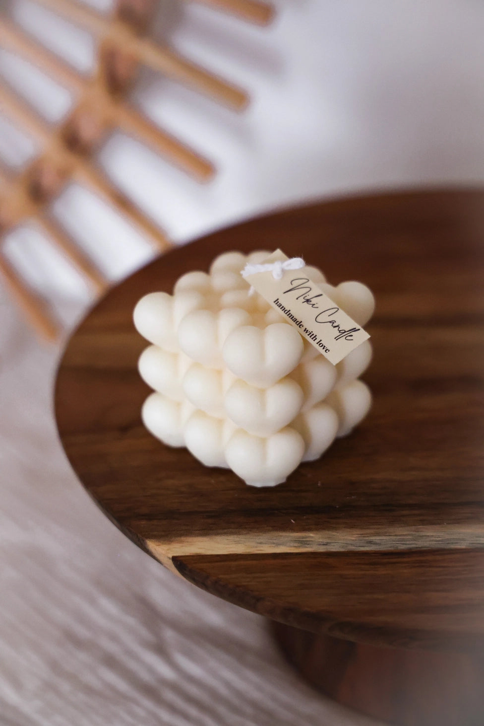Une bougie au design iconique qui fait craquer. Avec sa forme cube composée de coeurs, cette bougie est un véritable objet déco, à la fois moderne, douce et ultra instagrammable.