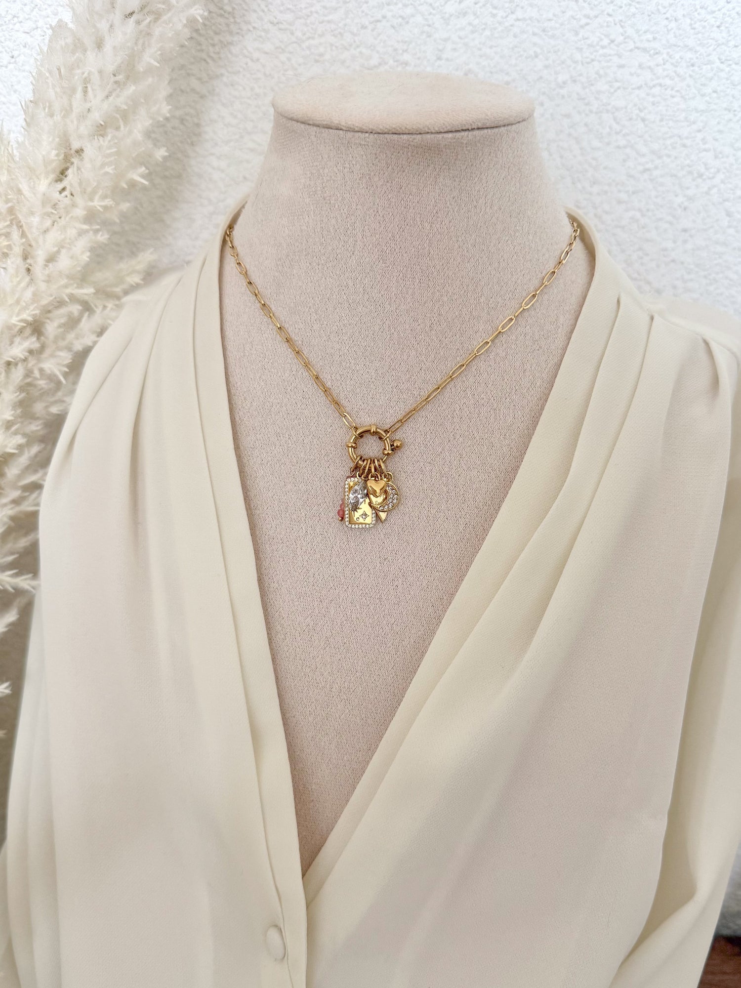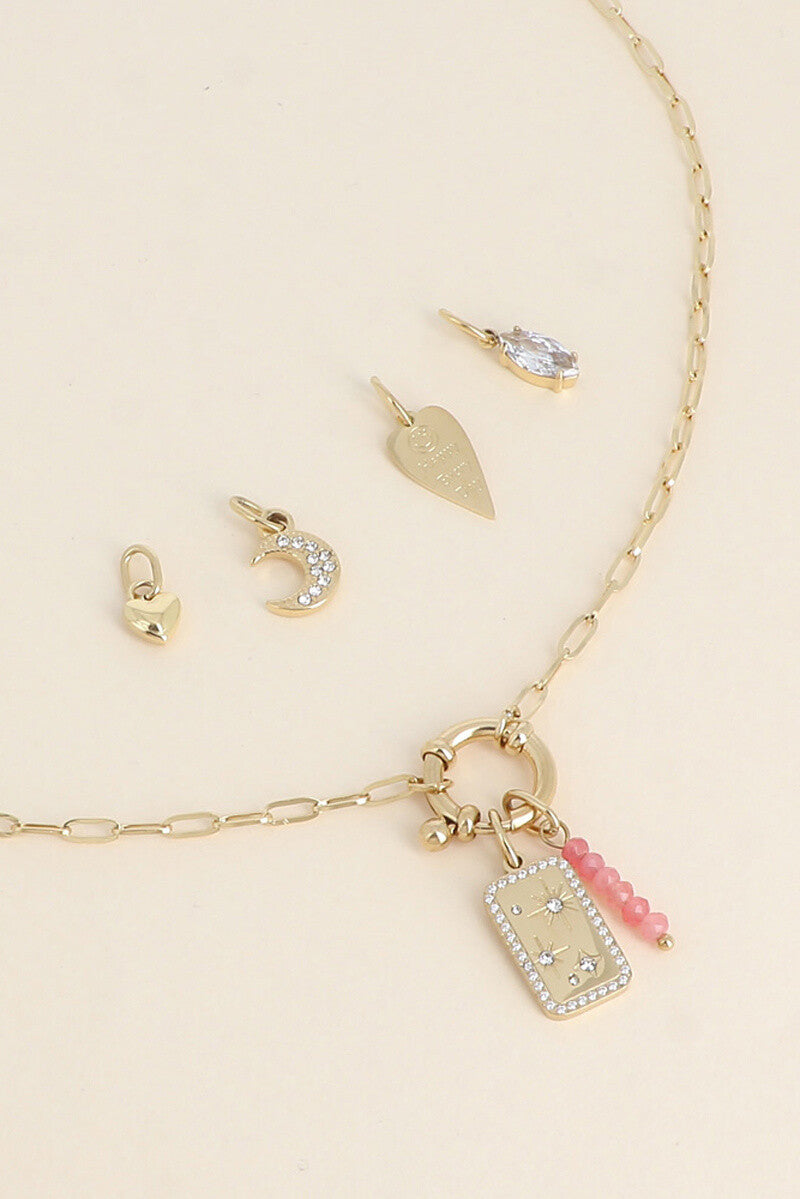 Créez votre propre histoire avec ce collier unique à charms interchangeables. Inspiré des bijoux talisman modernes, il allie symboles célestes, cœurs, pierres naturelles et message d’amour. Chaque pendentif peut être changé selon votre humeur ou vos envies du jour.