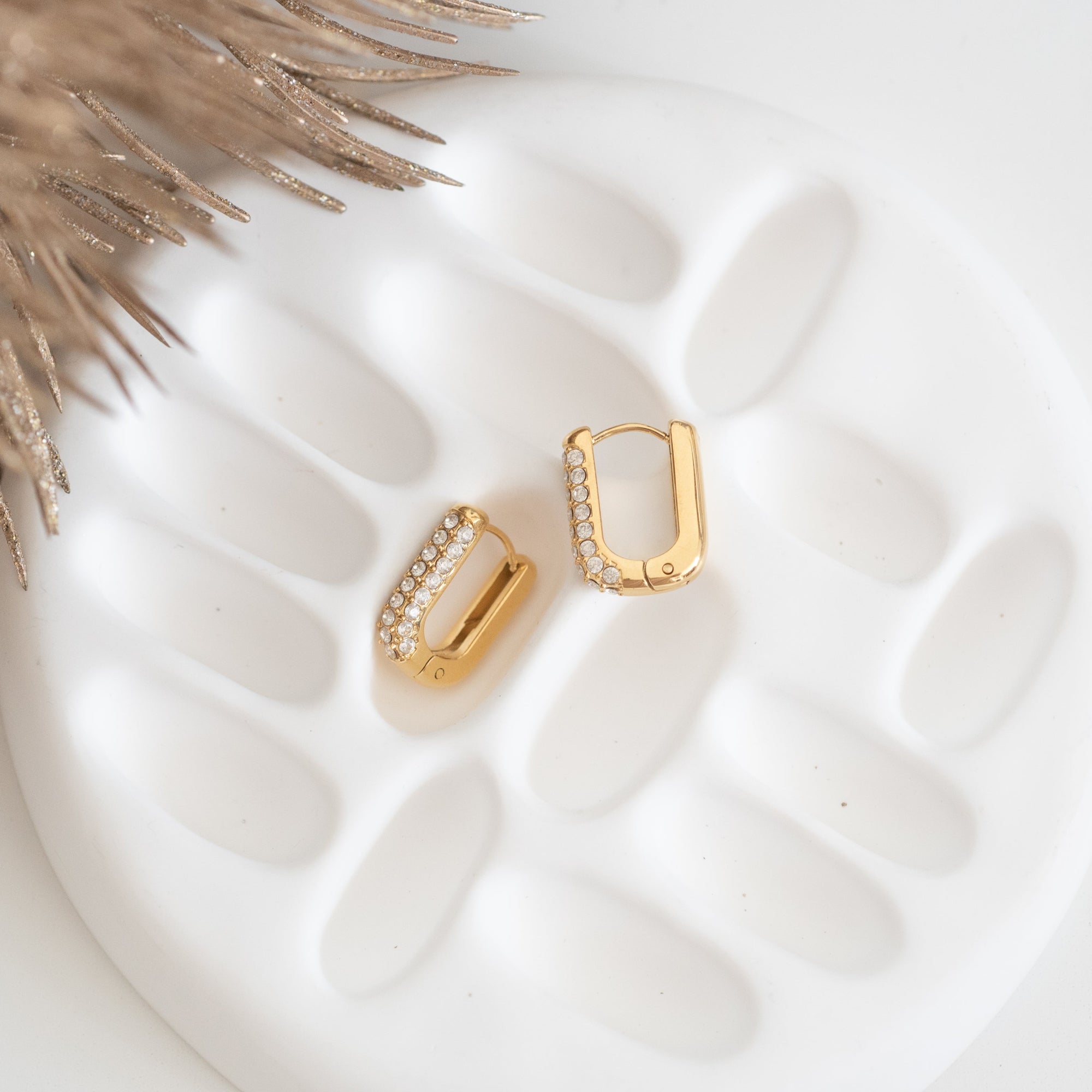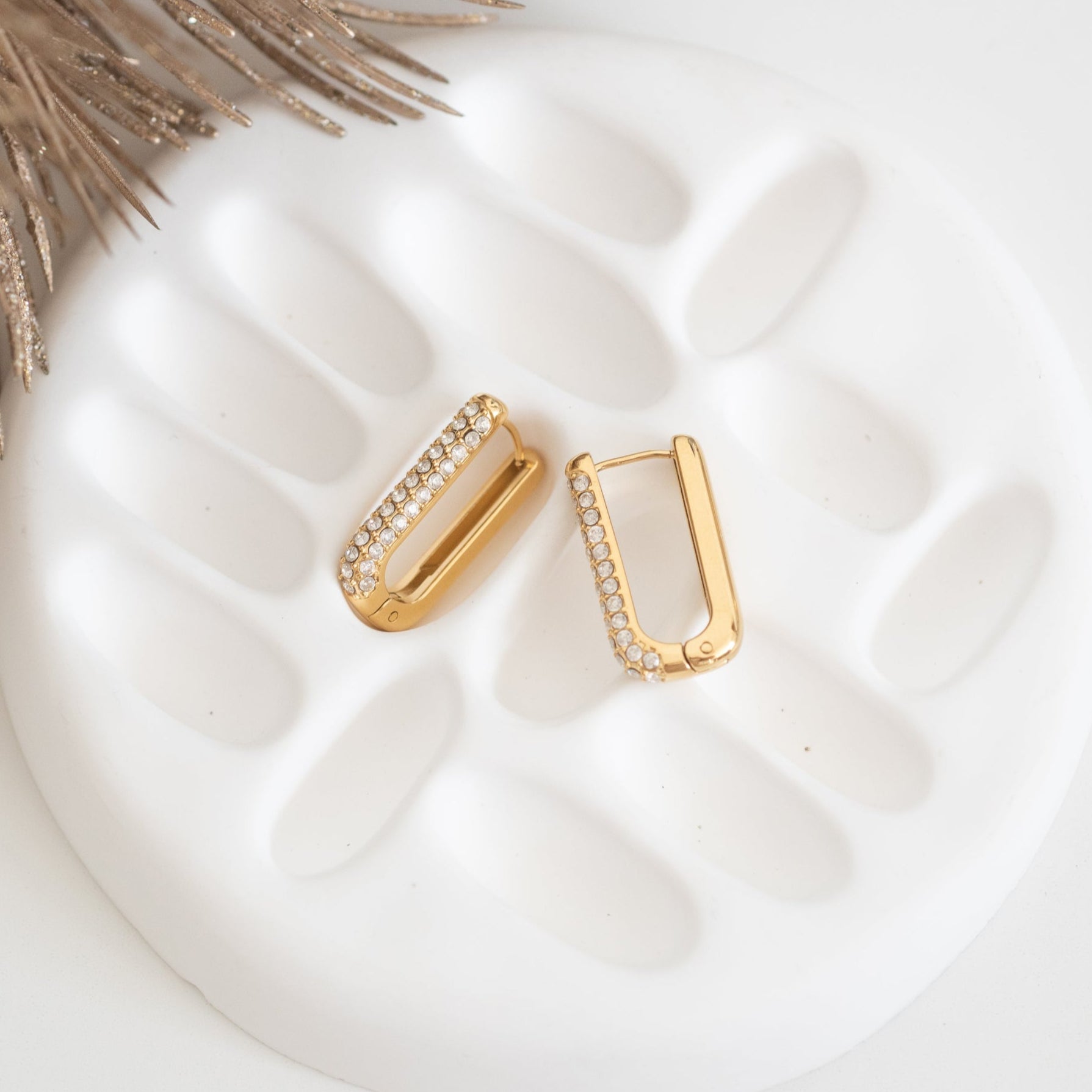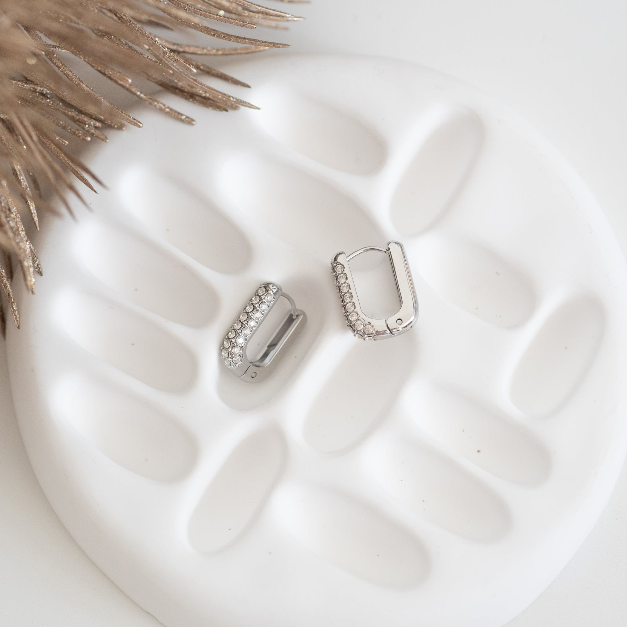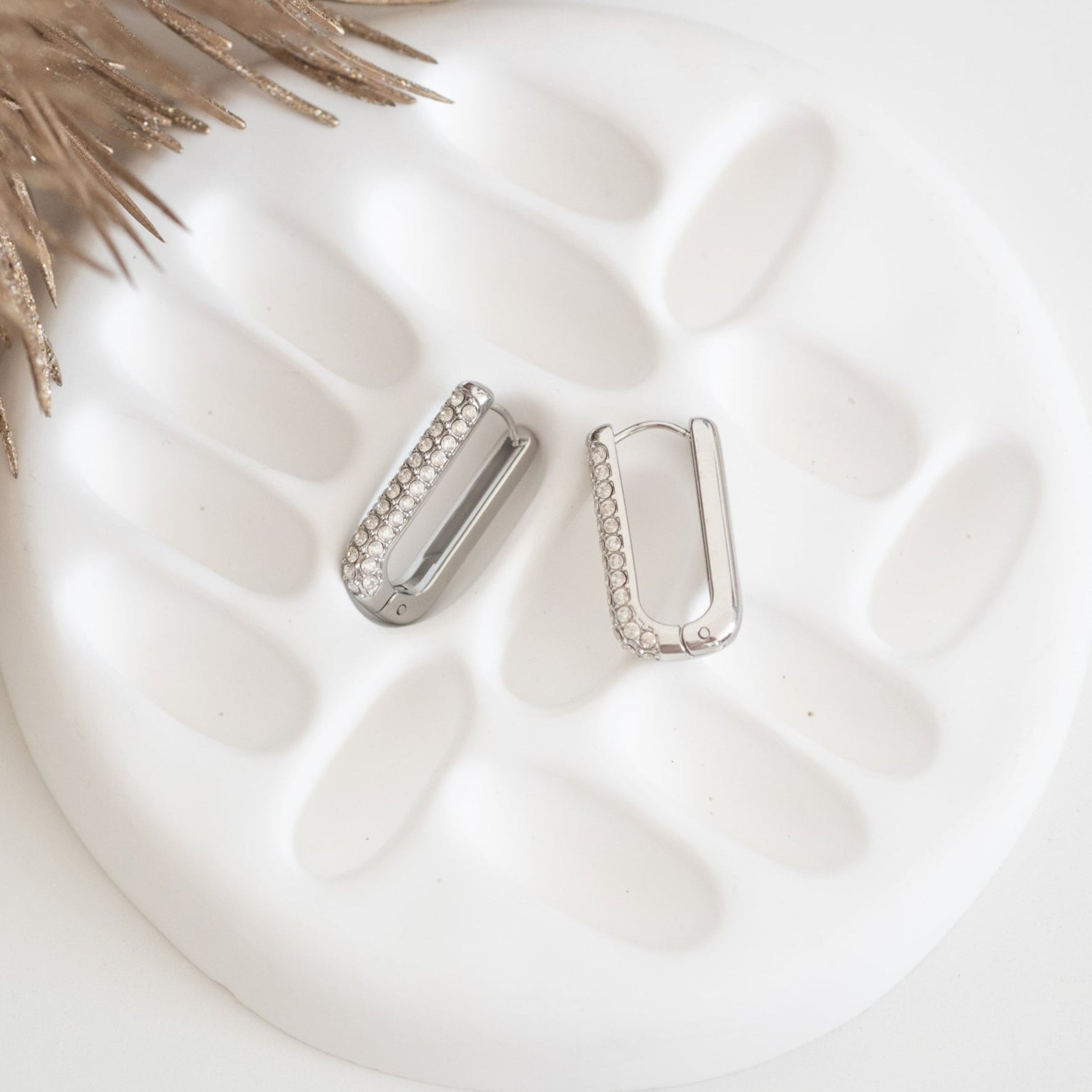 Faites sensation avec ces créoles au design moderne et ultra-brillant. Leur forme originale associée à un pavage complet de zircons leur donne une allure luxueuse sans effort.