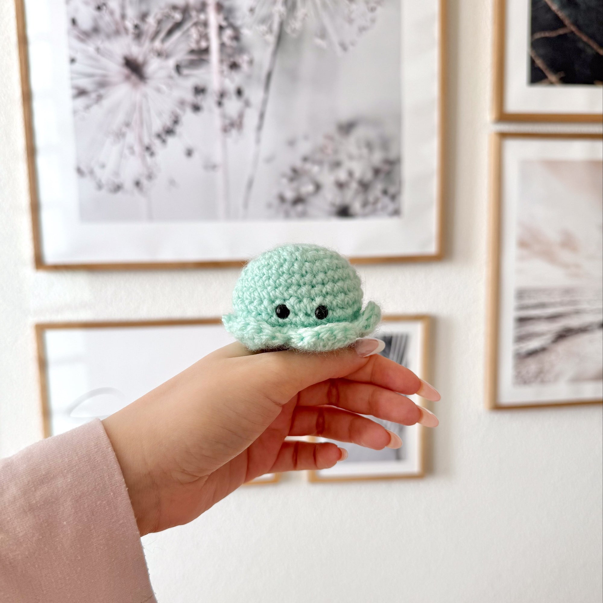 Craquez pour cette adorable petite pieuvre, entièrement réalisée à la main au crochet. Avec son regard tout doux et sa texture moelleuse, elle est parfaite comme objet décoratif, petit compagnon réconfortant ou idée cadeau pleine de tendresse.