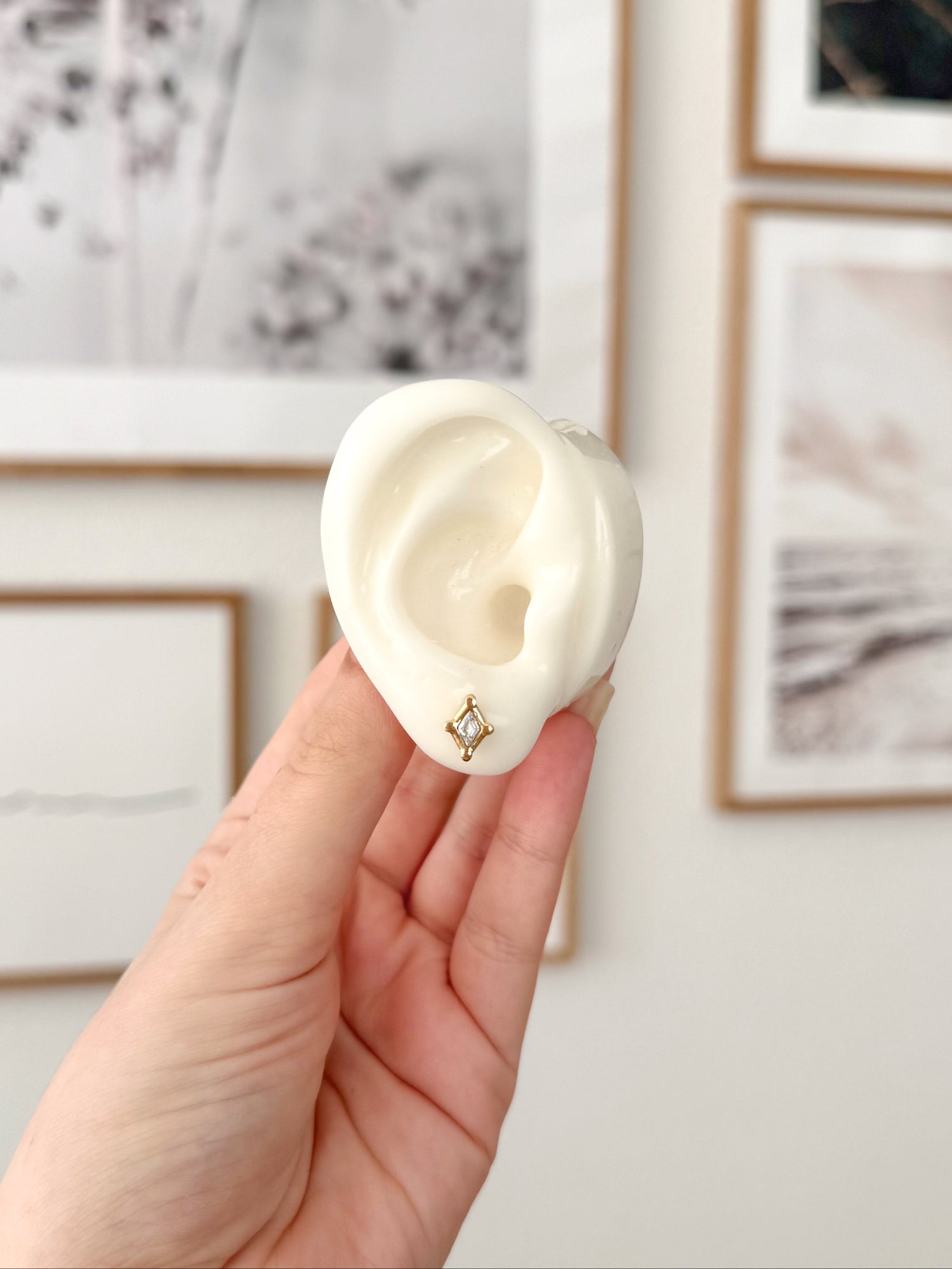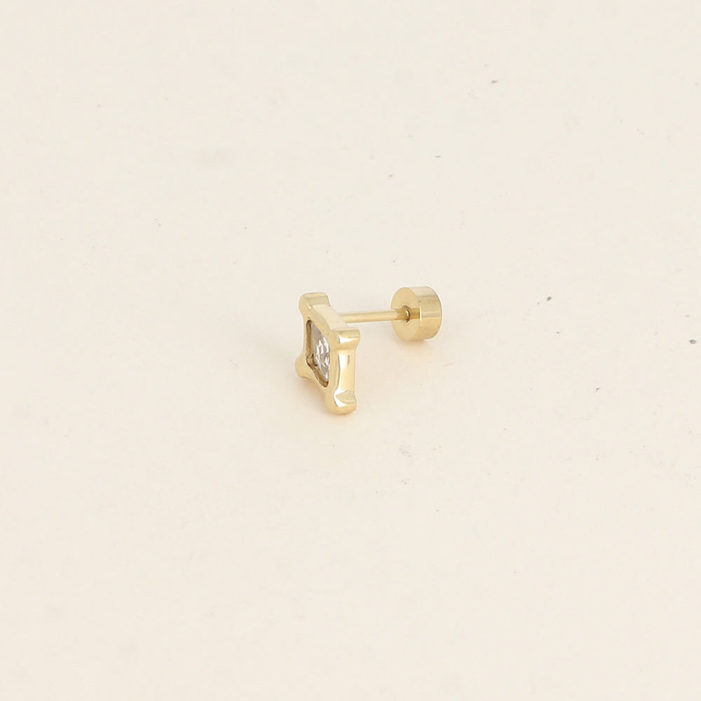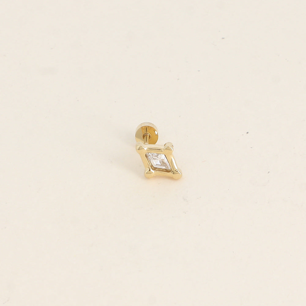 Élégance minimaliste et éclat subtil pour ce piercing en forme de losange. Un bijou discret, mais lumineux, parfait pour l'oreille ou le cartilage.