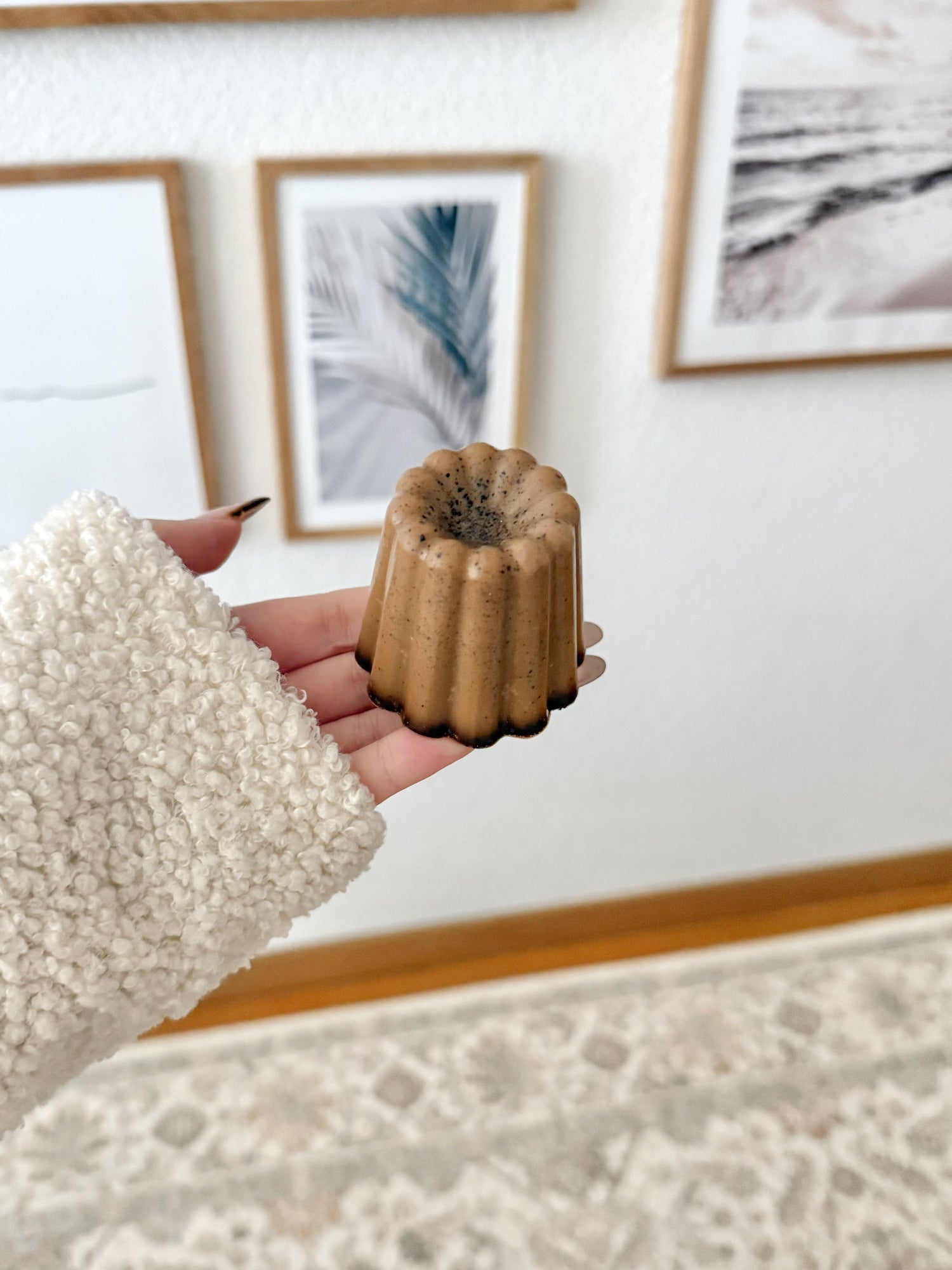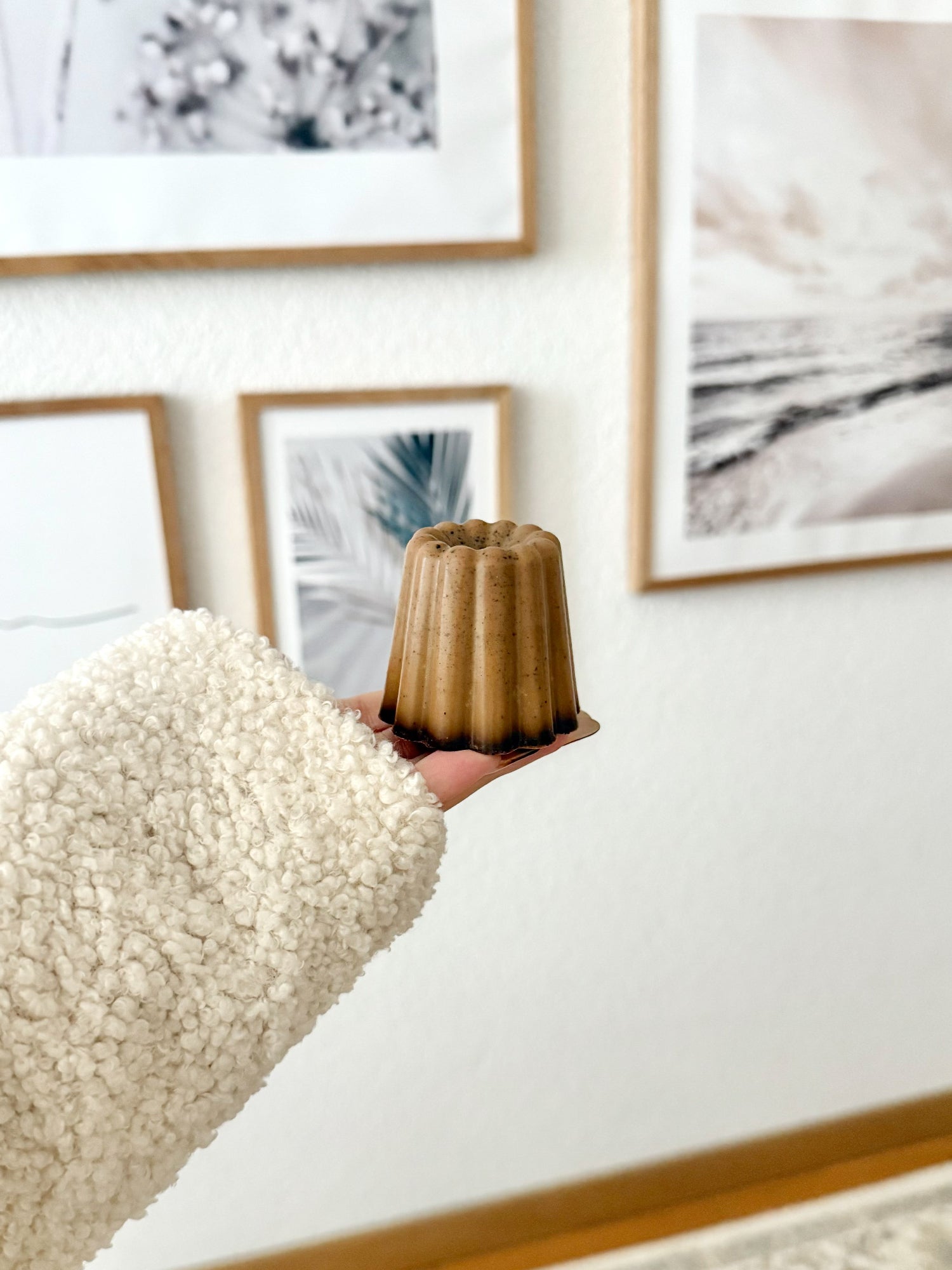 On croirait sentir l’odeur de la vanille et du caramel sortir du four… Inspiré du célèbre dessert bordelais, ce savon en forme de cannelé est entièrement fait main.