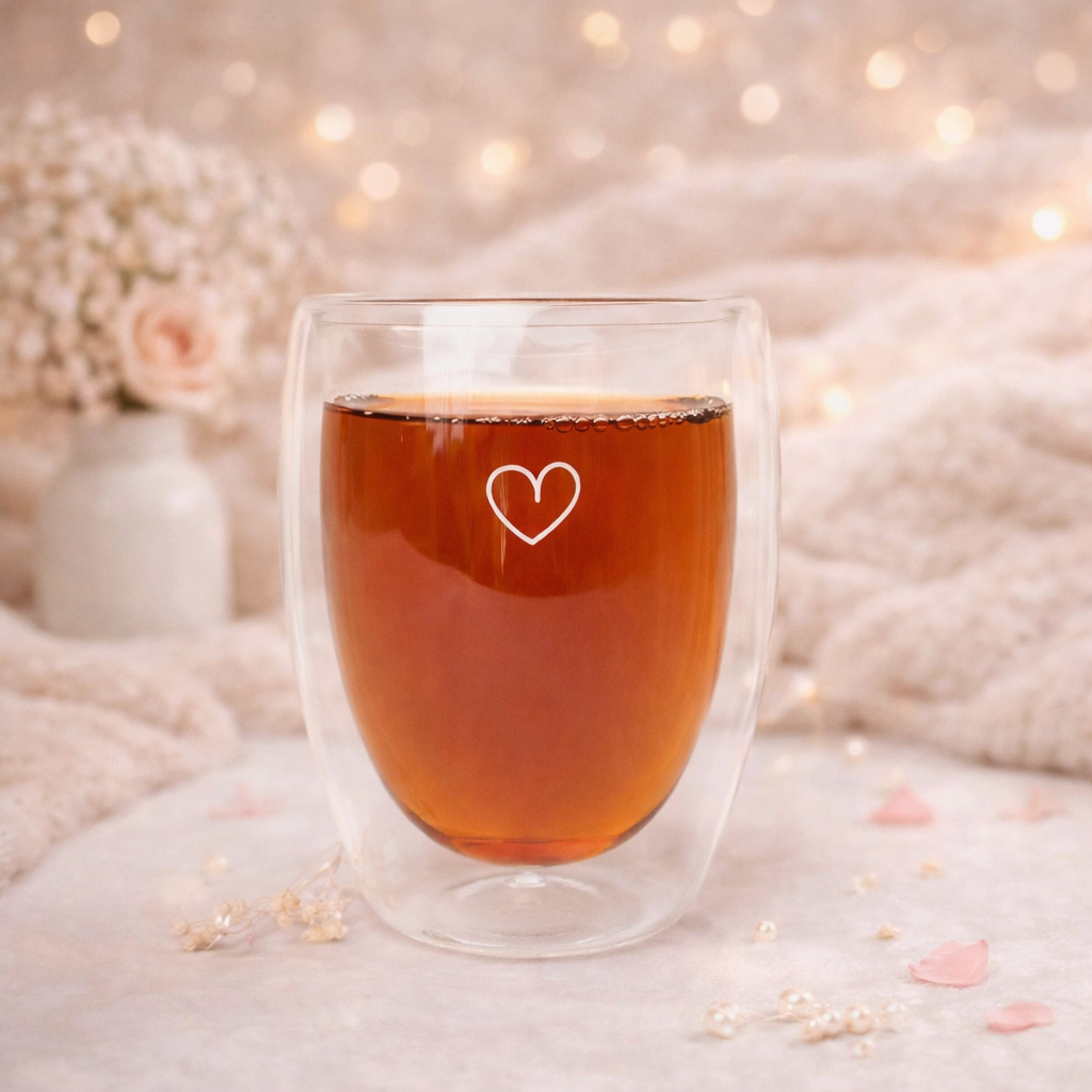 Parce qu’un thé (ou un café) est toujours meilleur quand il est servi avec amour. Cette tasse en verre double paroi transforme chaque pause boisson en un moment doux et réconfortant.